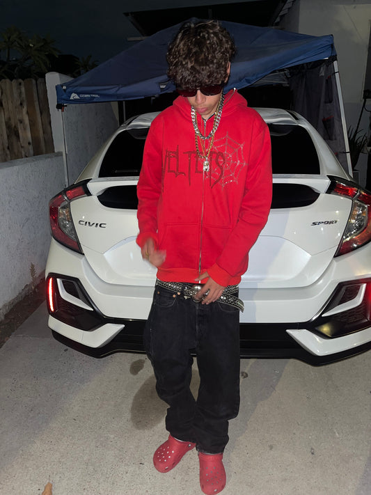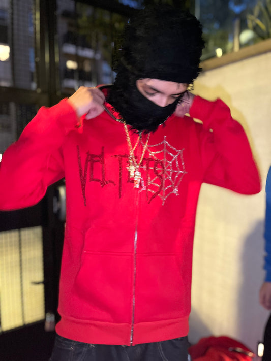 Rhinestone Webs Zip Up (red)