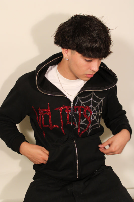 Rhinestone Webs zip up (black)
